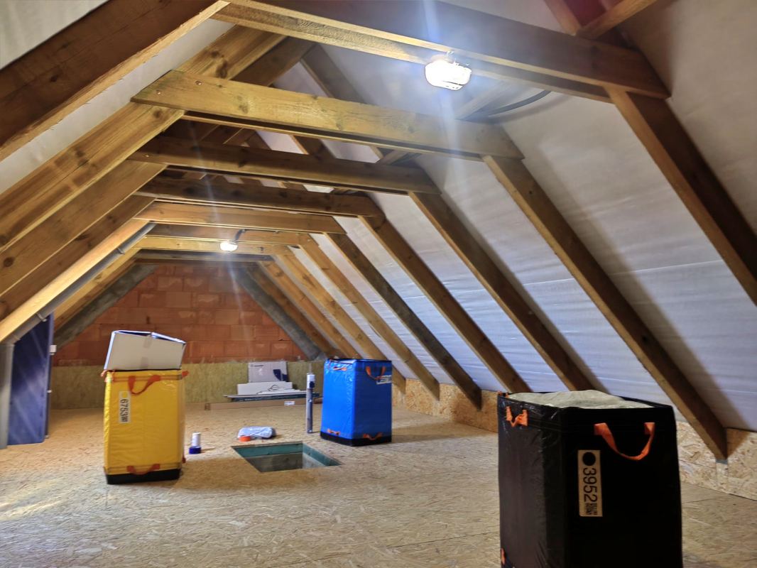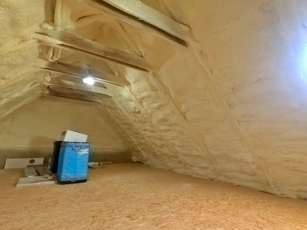 Docieplenie poddasza i zabezpieczenie przed utratą ciepła zimą jak i również przed wpływaniem gorącego powietrza latem. Wykorzystaliśmy pianę otwarto-komórkową od firmy PURECO PS06.