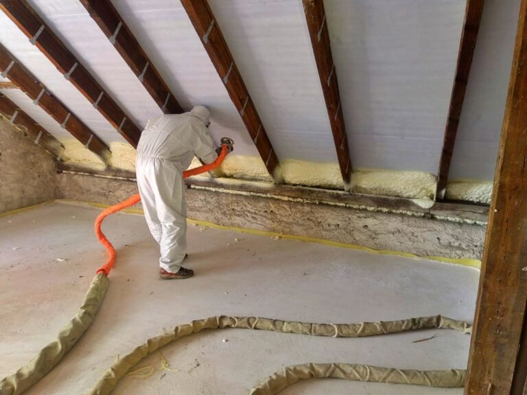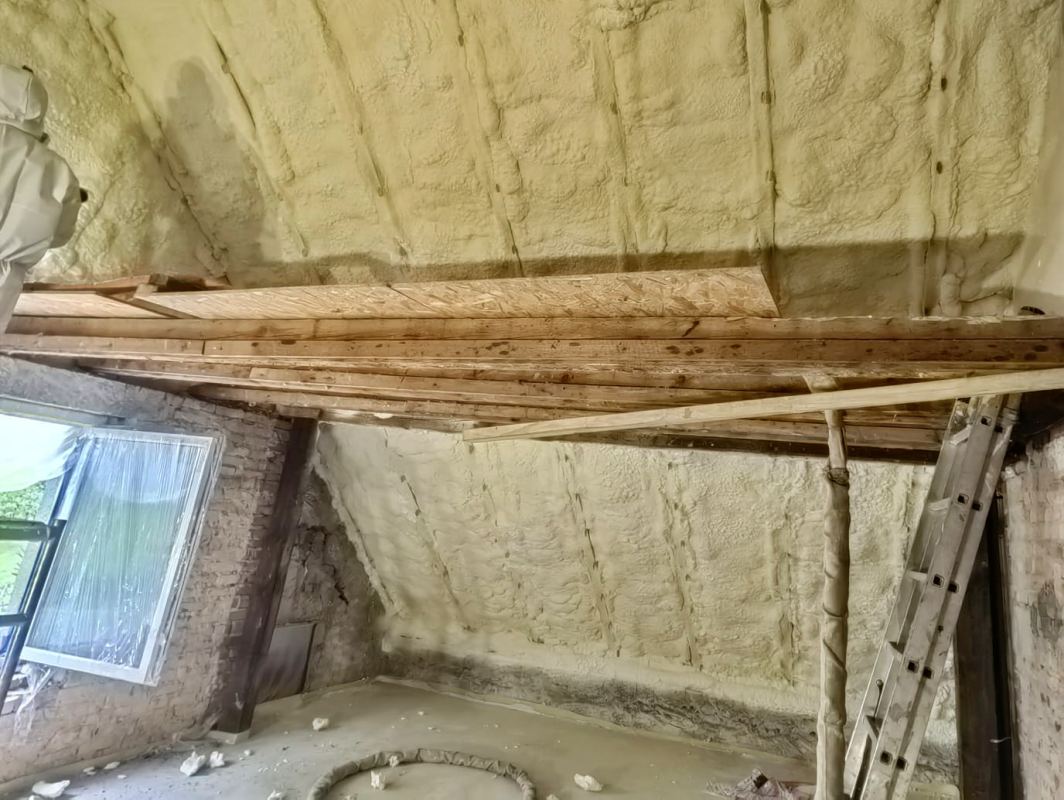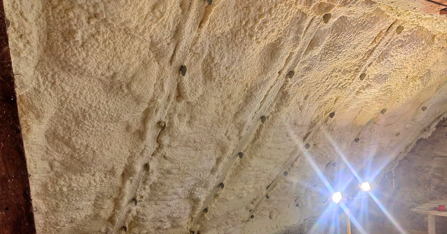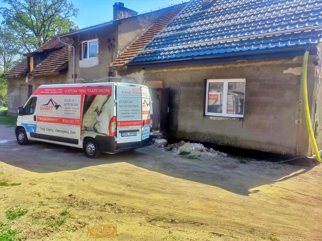 Tym razem byliśmy w Nowej Kuźni, gdzie naszym zadaniem było ocieplenie poddasza pianą poliuretanową otwarto-komórkową PS06 20cm.